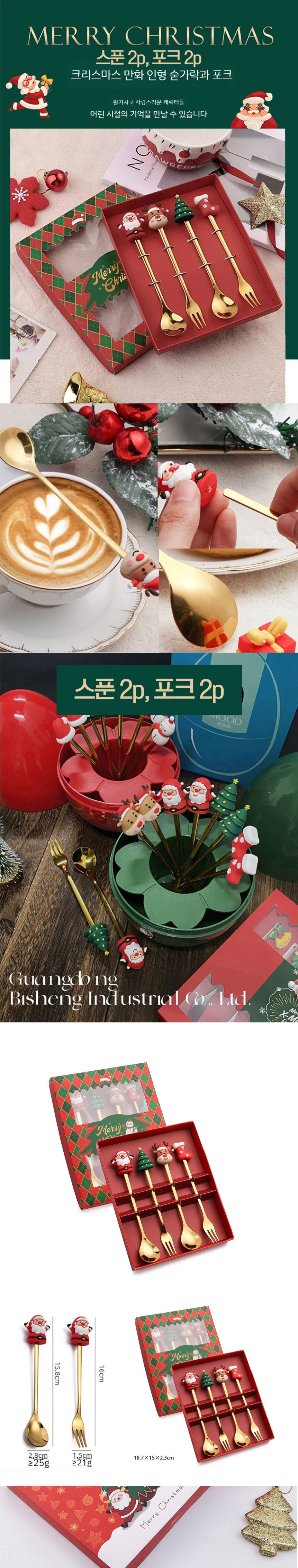[크리스마스] 만화 인형 스푼포크 4p세트(선물케이스) X 5