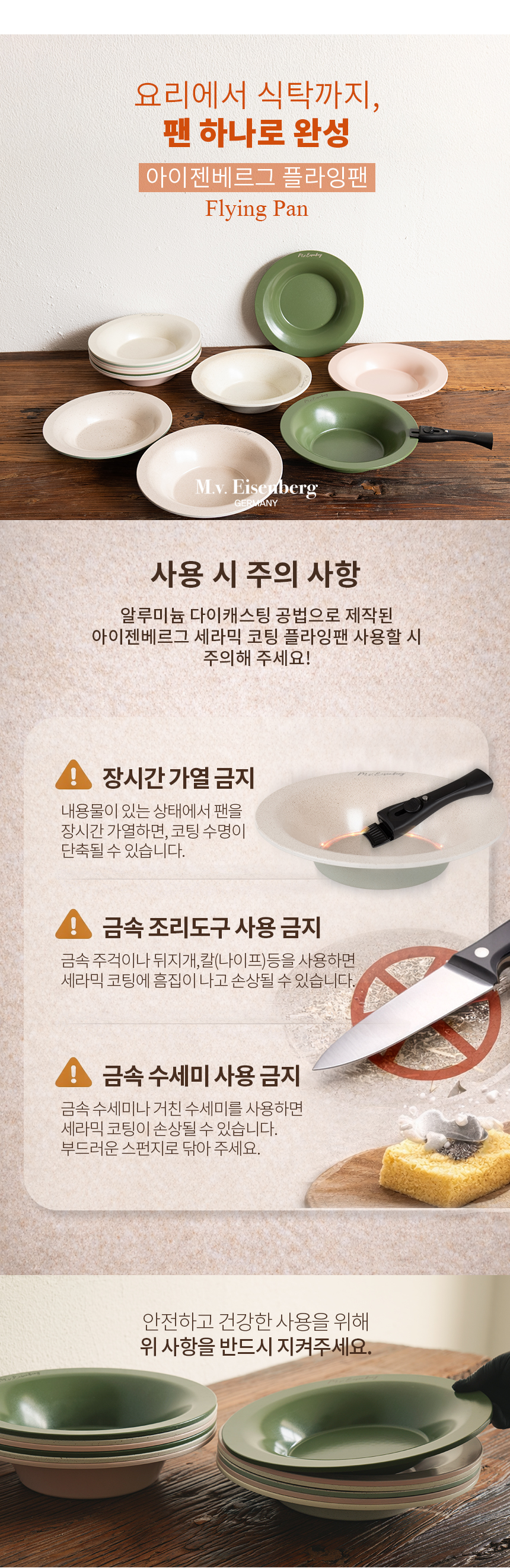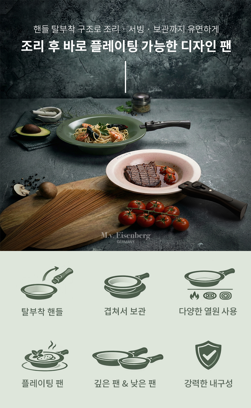 [Eisenberg] 아이젠베르그 세라믹 플레이팅팬 낮은팬28+낮은팬28+탈착식핸들